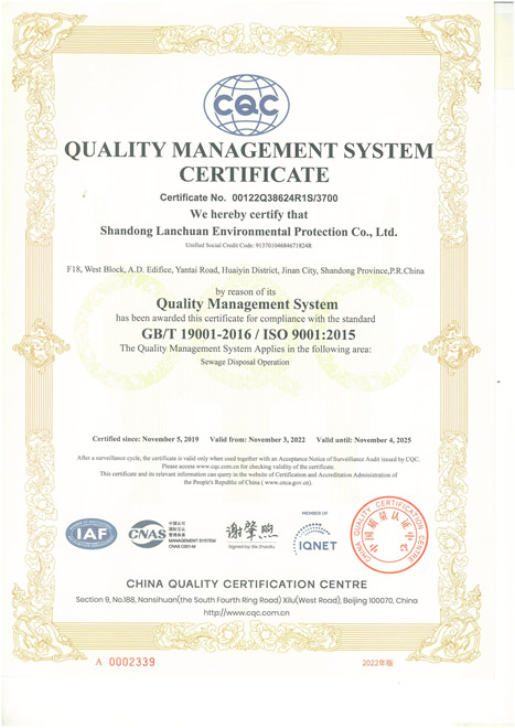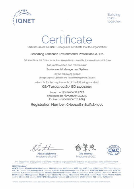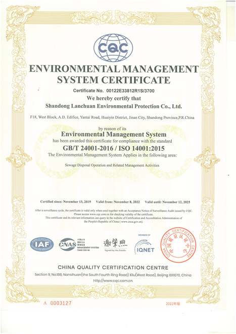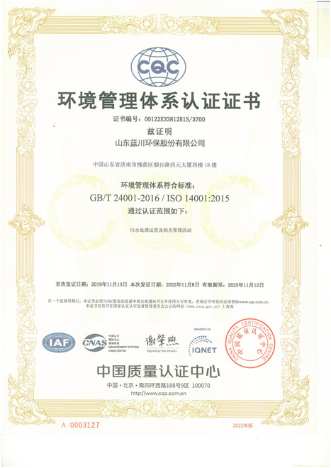 環(huán)境管理體系認(rèn)證證書