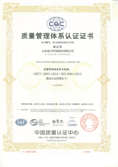 質(zhì)量管理體系認(rèn)證證書