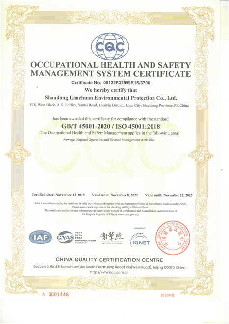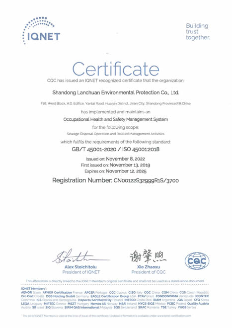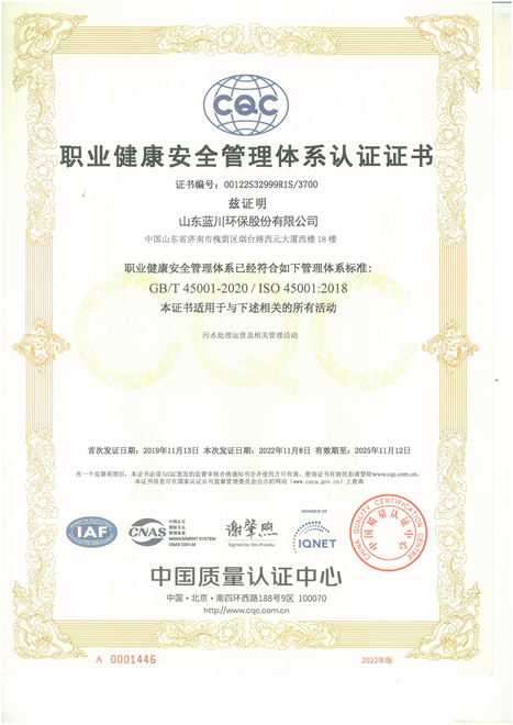 職業(yè)健康安全管理體系認(rèn)證證書